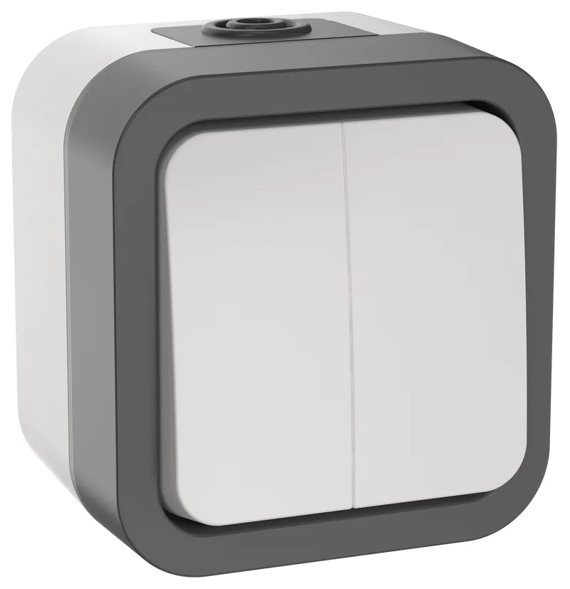 Переключатель TORS, двухклавишный, без подсветки, цвет - серо-белый