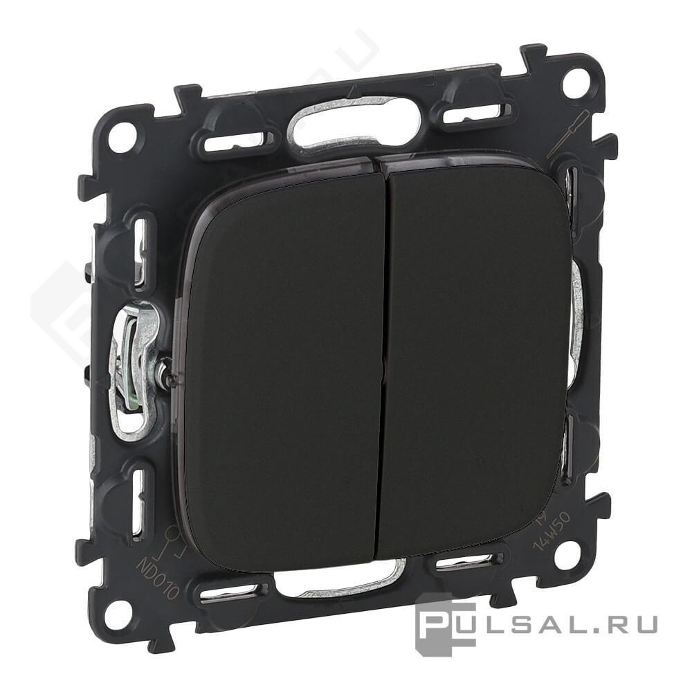 Выключатель Valena Allure, двухклавишный, без подсветки, цвет - матовый черный