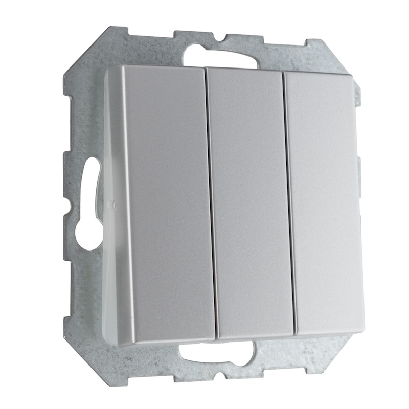 Выключатель Epsilon, Retro Liregus, трехклавишный, без подсветки, цвет - алюминий