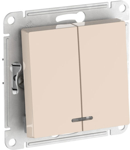 Выключатель (безвинтовые клеммы) Atlas Design Antique, AtlasDesign Air, Atlas Design, двухклавишный, с подсветкой, цвет - бежевый