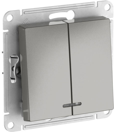 Выключатель (безвинтовые клеммы) Atlas Design Antique, AtlasDesign Air, Atlas Design, двухклавишный, с подсветкой, цвет - сталь