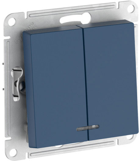 Выключатель (безвинтовые клеммы) Atlas Design Antique, AtlasDesign Air, Atlas Design, двухклавишный, с подсветкой, цвет - аквамарин