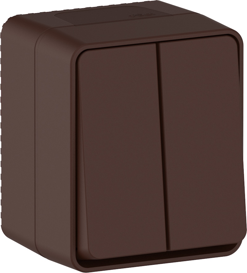 Выключатель Atlas Design Profi 54, двухклавишный, без подсветки, цвет - коричневый