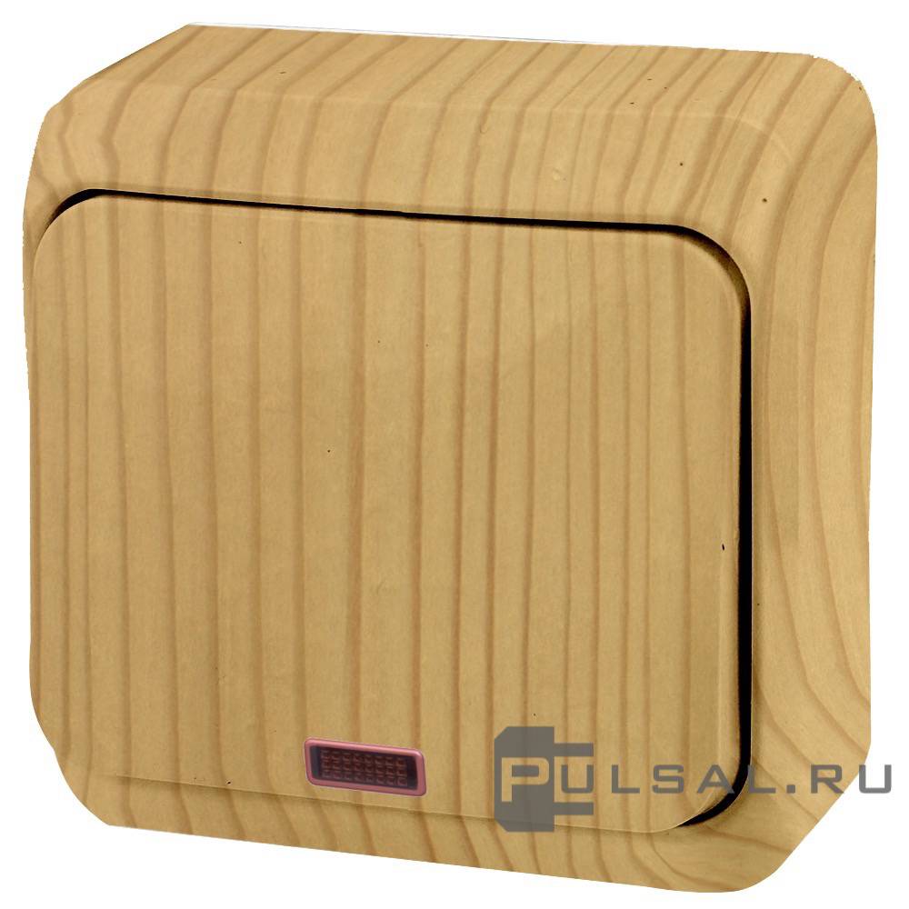 Выключатель Этюд, одноклавишный, без подсветки, цвет - сосна