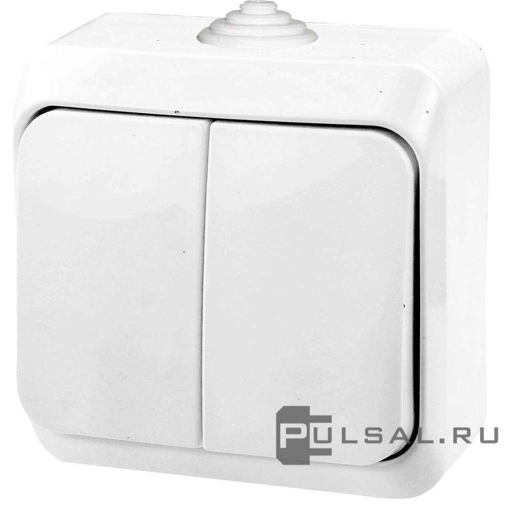 Выключатель с рамкой Этюд, двухклавишный, без подсветки, цвет - белый