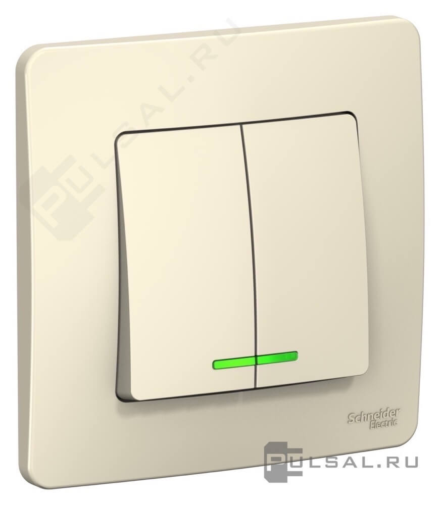 Выключатель 10 А Blanca, двухклавишный, с подсветкой, цвет - молочный
