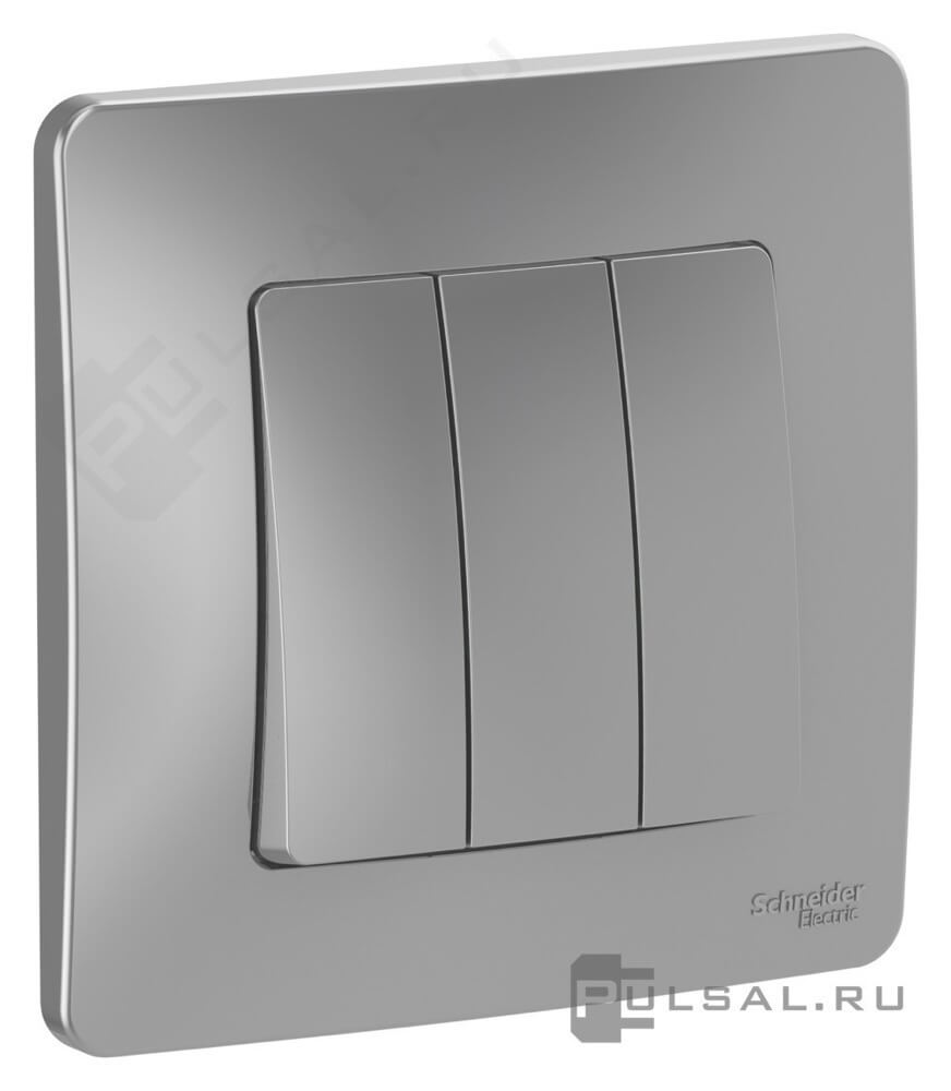 Светорегулятор (диммер) 10-400 Вт/ВА, для LED 5-150 ВА (без монтажных лапок) Blanca, поворотно-нажимной, с возможностью управления с 2-х мест, лампы накаливания и галогенные 220В (R), лампы с индукционным (обмоточным) трансформ.(L), лампы с электронным (емкостным) трансформ.(C), диммируемые лампы LED 220В (LEDi тип C), цвет - алюминий
