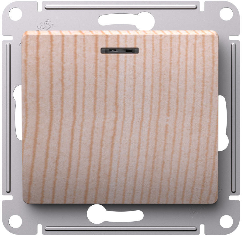 Переключатель Glossa, одноклавишный, без подсветки, цвет - сосна