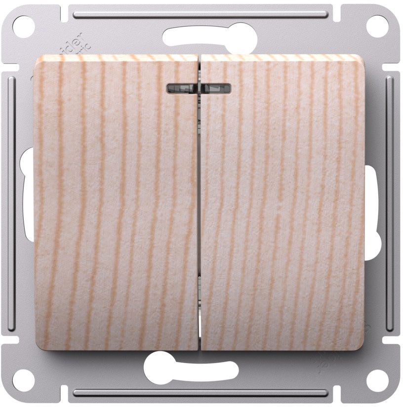 Выключатель Glossa, двухклавишный, с подсветкой, цвет - сосна