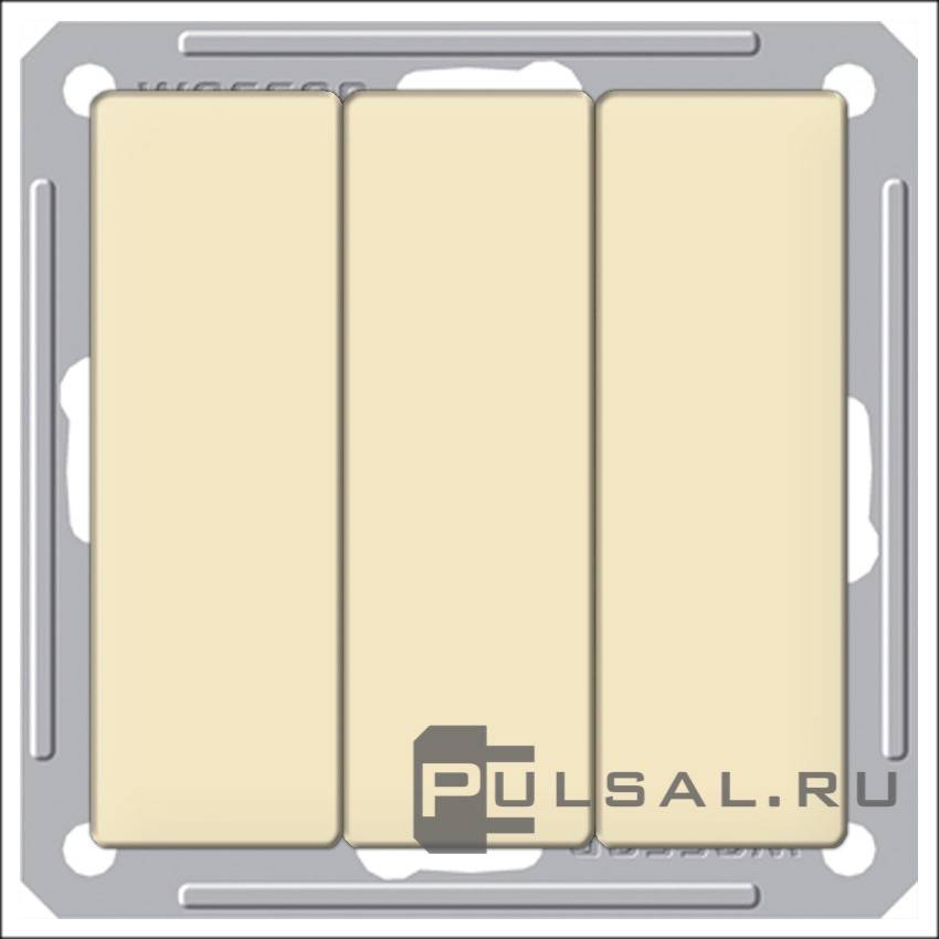Выключатель 10 А W59, трехклавишный, без подсветки, цвет - слоновая кость