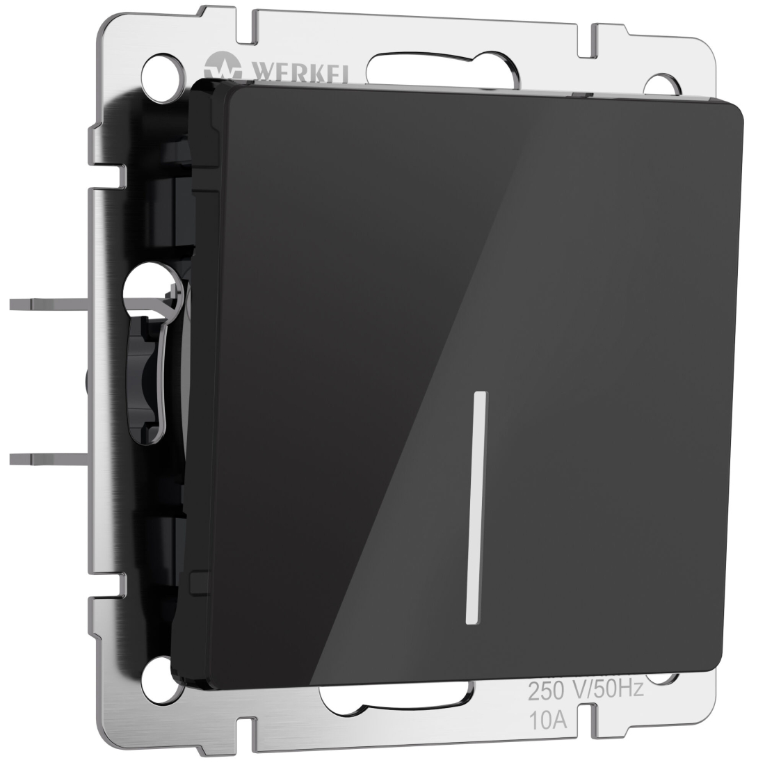 Переключатель Alumax, Split, Slab, Senso, Baguette, Acrylic, Platinum, Elite, Snabb, Stream, Flock, Stark, Fiore, Favorit, Diamant, Aluminium, Antik, Metallic, одноклавишный, с подсветкой, цвет - черный акрил