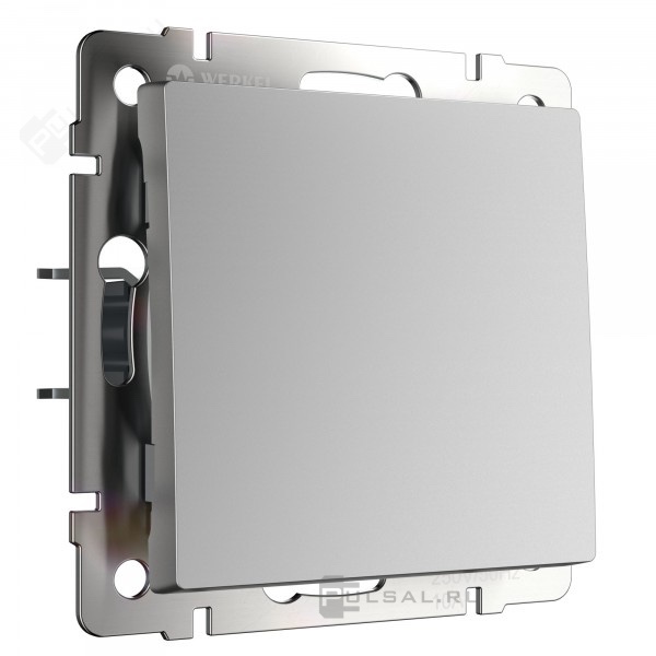 Переключатель Alumax, Split, Slab, Senso, Baguette, Acrylic, Platinum, Elite, Snabb, Stream, Flock, Stark, Fiore, Favorit, Diamant, Aluminium, Antik, Metallic, одноклавишный, без подсветки, цвет - серебряный