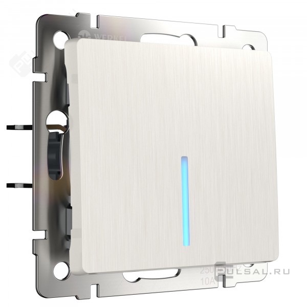Переключатель Alumax, Split, Slab, Senso, Baguette, Acrylic, Platinum, Elite, Snabb, Stream, Flock, Stark, Fiore, Favorit, Diamant, Aluminium, Antik, Metallic, одноклавишный, без подсветки, цвет - перламутр рифленый
