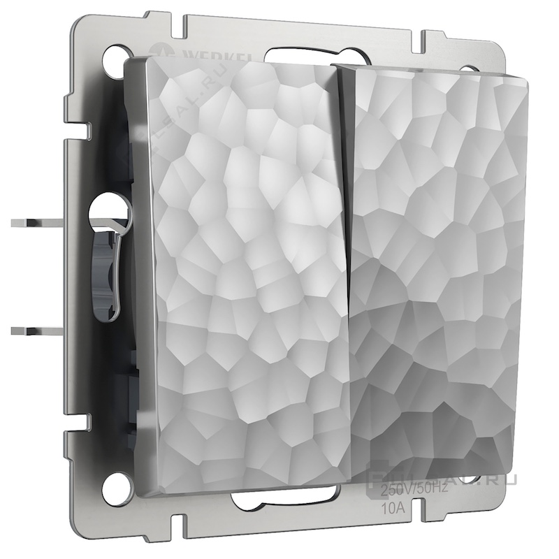 Переключатель Hammer, одноклавишный, без подсветки, цвет - серебряный