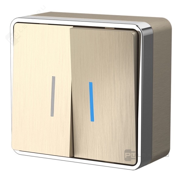 Выключатель Gallant, двухклавишный, с подсветкой, цвет - шампань рифленый