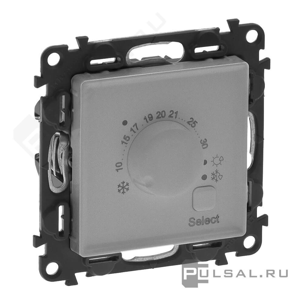 Терморегулятор 8А, перекидной контакт, 230В Valena Life, поворотный, датчик t° воздуха (встроенный), без таймера, цвет - алюминий