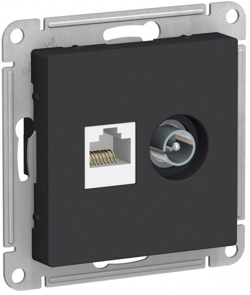 Розетка компьютерная RJ45 Cat.6a (FTP) Atlas Design Antique, AtlasDesign Air, Atlas Design, одинарная, цвет - карбон