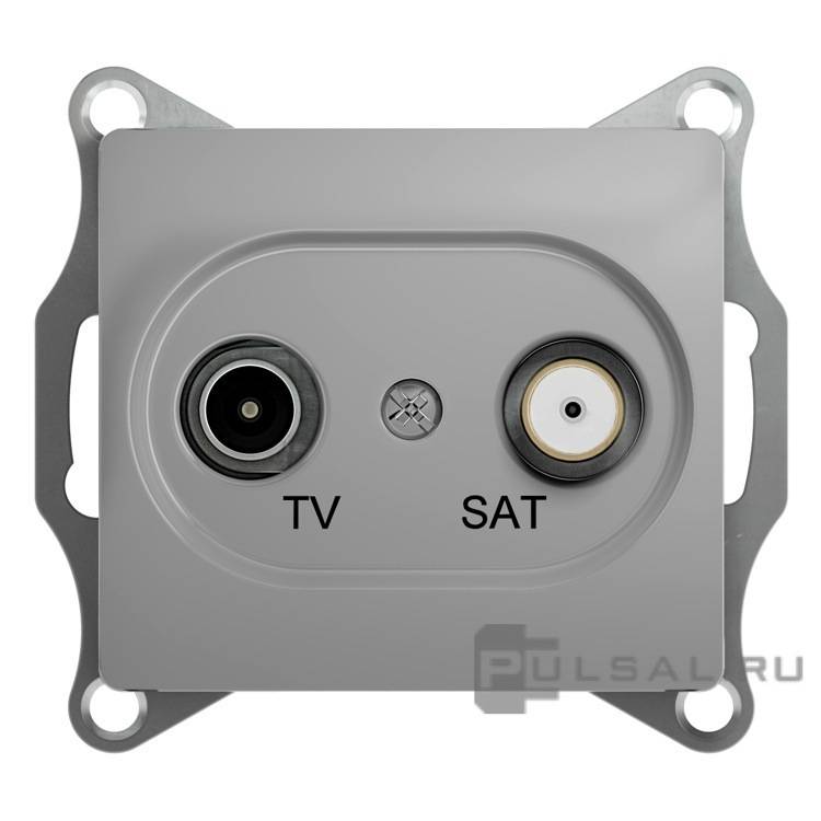Розетка телефонная RJ11 Glossa, одинарная, цвет - алюминий
