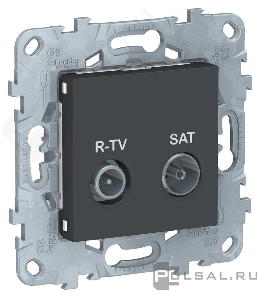 Unica New Pure, Unica New Studio, без шторок, с заземлением, одинарная, безвинтовые клеммы, цвет - антрацит