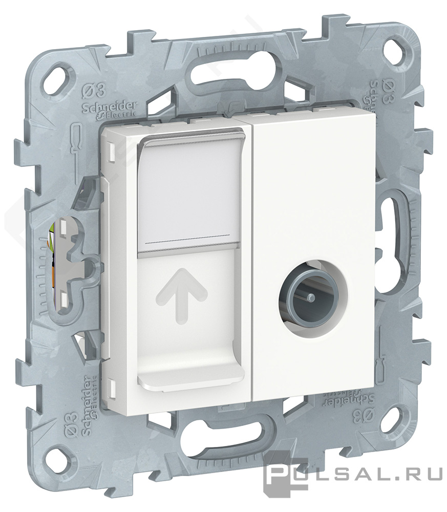 Розетка одиночная TV+RJ45 Unica New Pure, Unica New Studio, телевизионная (TV), одинарная, цвет - белый