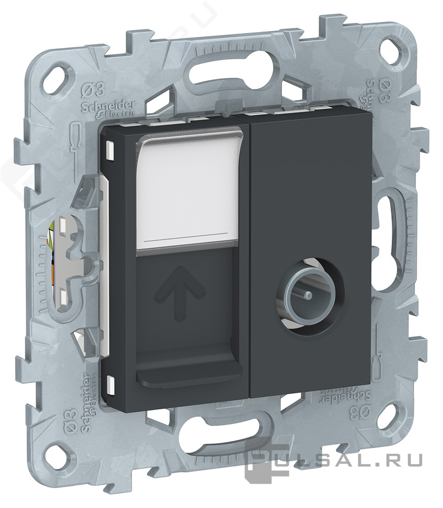 Unica New Pure, Unica New Studio, без шторок, с заземлением, одинарная, безвинтовые клеммы, цвет - антрацит