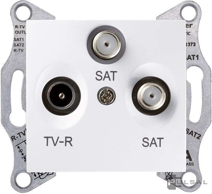 Розетка проходная 8 dB Sedna, телевизионная (TV), спутниковая (SAT), двойная, цвет - белый