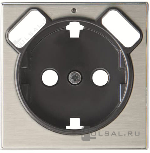 Накладка розетки с плоской поверхностью SKY, со шторками, с заземлением, одинарная, винтовые клеммы, цвет - нержавеющая сталь