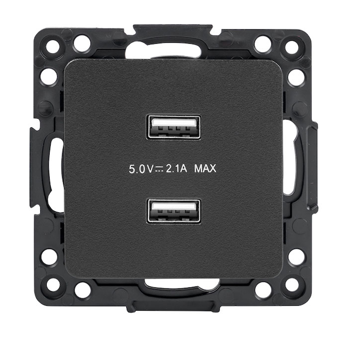 Розетка USB A+A, 2.1А Стокгольм, USB type-A 5V, двойная, цвет - черный