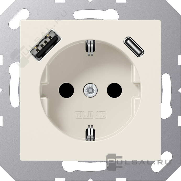 Розетка USB A+C с электрической розеткой AS 500, USB type-C 5V, USB type-A 5V, Электр. с USB, двойная, цвет - слоновая кость