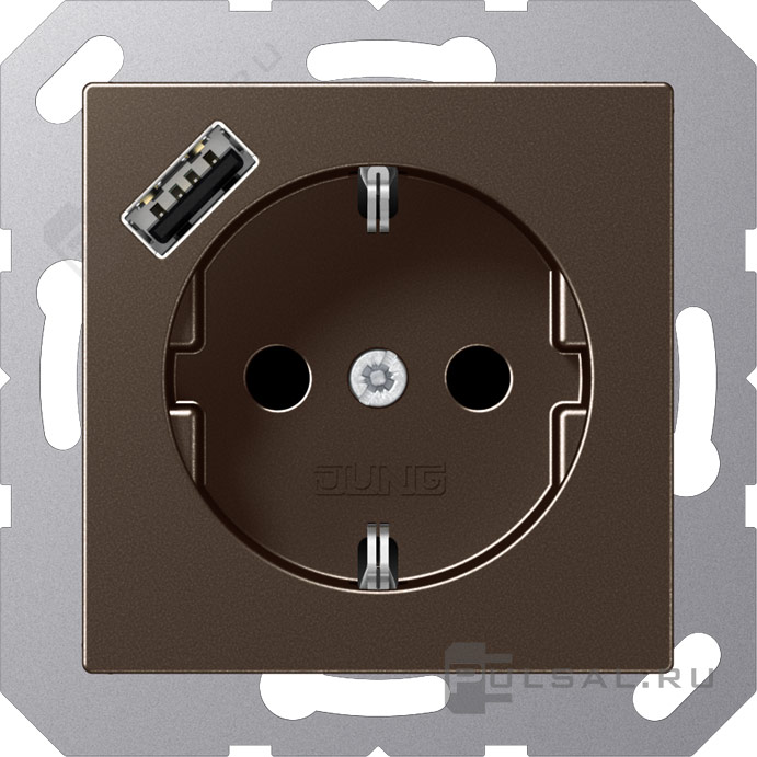 Розетка USB A с электрической розеткой A VIVA, A creation, A 550, A flow, USB type-A 5V, Электр. с USB, одинарная, цвет - мокко