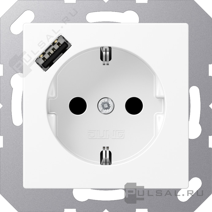 Розетка USB A с электрической розеткой A VIVA, A creation, A 550, A flow, USB type-A 5V, Электр. с USB, одинарная, цвет - белый матовый