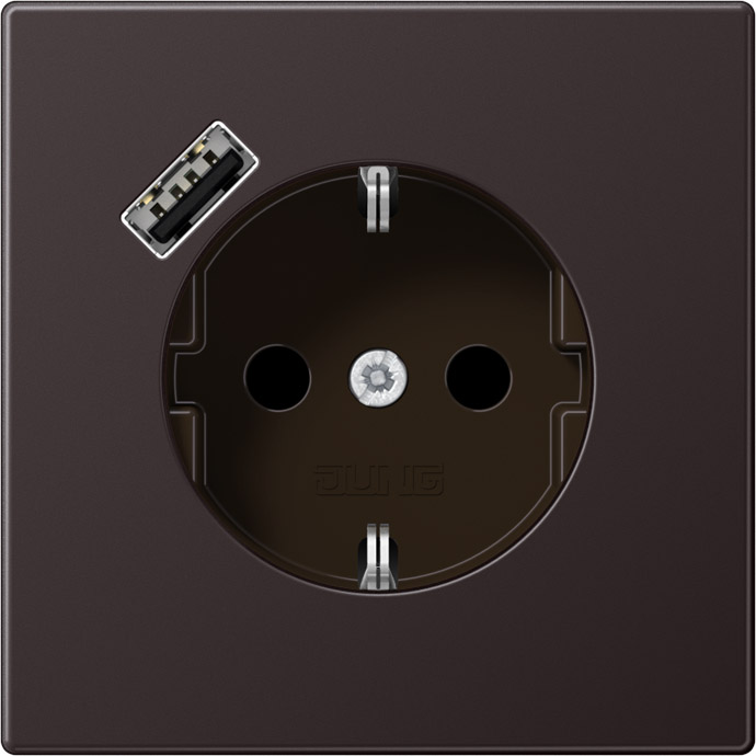 Розетка USB A с электрической розеткой LS 990, LS 1912, LS ZERO, LS-design, FD-design, USB type-A 5V, Электр. с USB, одинарная, цвет - алюминий темный