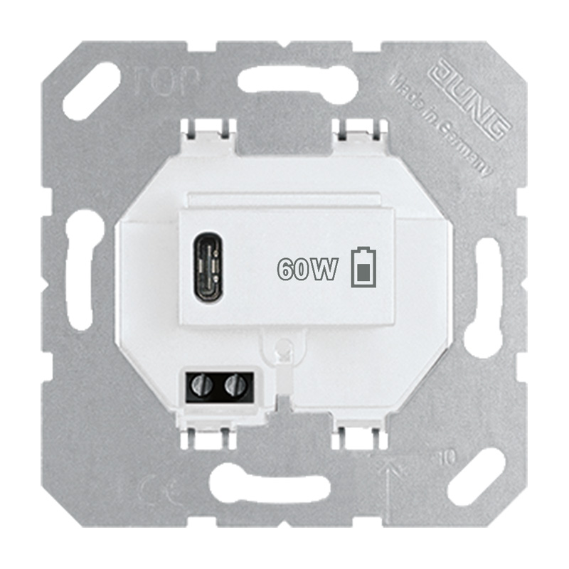 Механизм розетки USB-C, 3А, 60 Вт с быстрой зарядкой A VIVA, A creation, A flow, A 550, AS 500, CD 500, CD plus, LS 1912, LS 990, LS plus, LS 990 Les Couleurs Le Corbusier, LS ZERO, LS-design, SL 500, ECO profi и ECO profi Standart, ECO profi design (ECO Profi Deco), USB type-C 5V, одинарная, цвет - белый