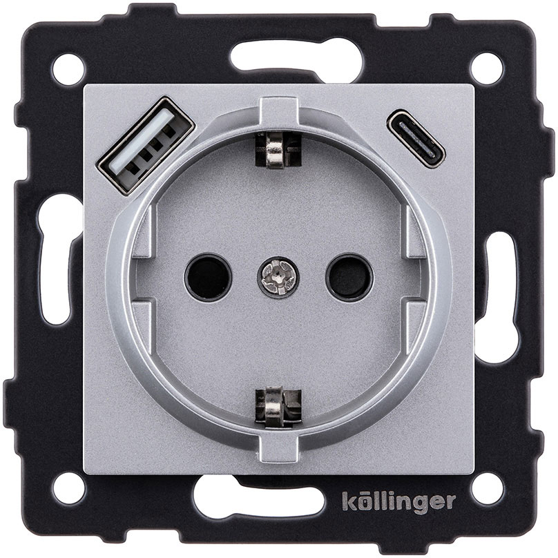 Розетка электрическая Aspekt, Eleganz, Reflex, с заземлением, одинарная, винтовые клеммы
