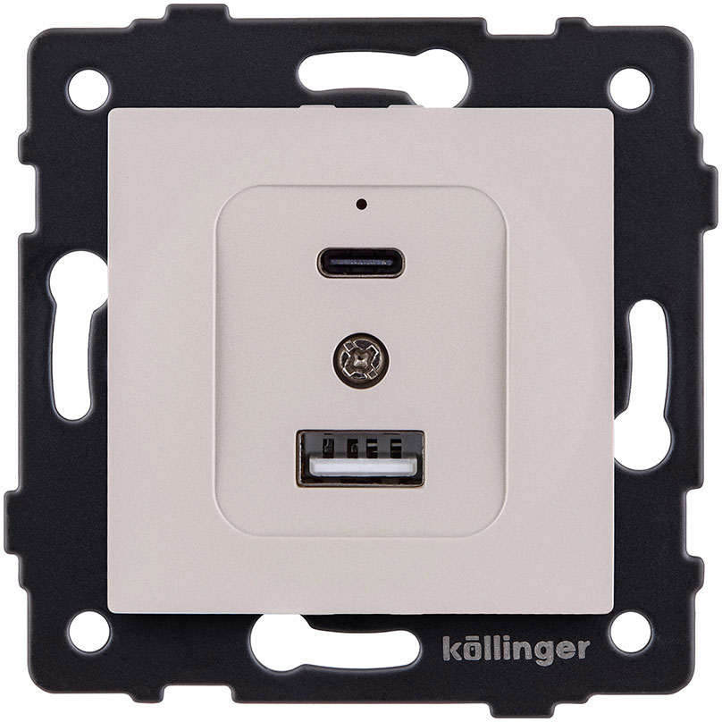 Розетка USB type-C + type-A, 3.0А Aspekt, Eleganz, Reflex, USB type-C 5V, USB type-A 5V, двойная