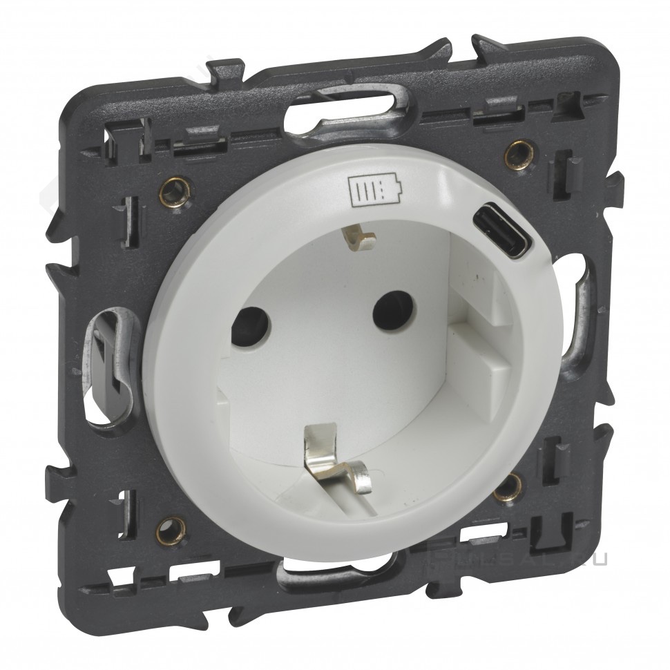 Умная розетка Netatmo, Celiane, со шторками, с заземлением, одинарная, безвинтовые клеммы, цвет - белый, белый глянец