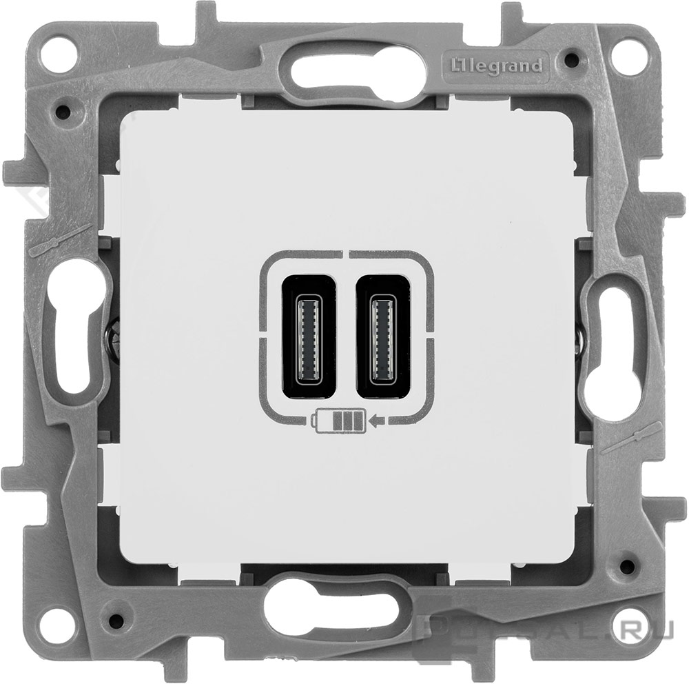 Розетка USB type-C, 3.0А Etika, USB type-C 5V, двойная, цвет - белый