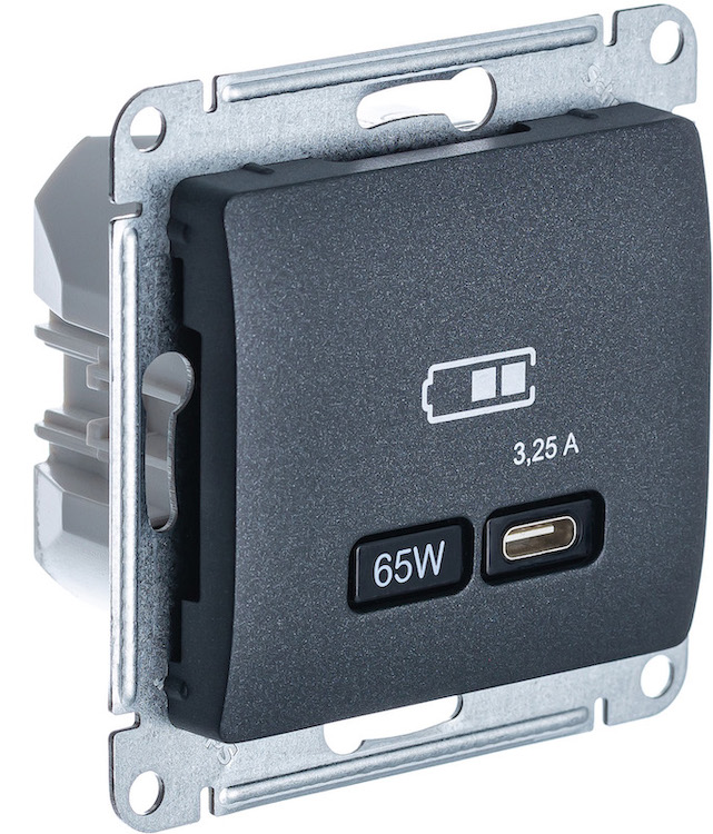 Glossa, поворотно-нажимной, лампы накаливания и галогенные 220В (R), лампы с индукционным (обмоточным) трансформ.(L), лампы с электронным (емкостным) трансформ.(C), диммируемые лампы LED 220В (LEDi тип L), диммируемые лампы LED 220В (LEDi тип C), цвет - антрацит