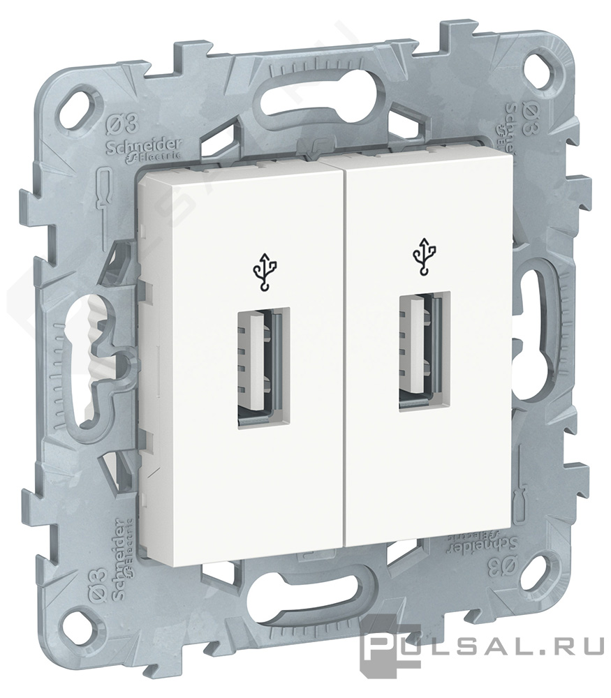 Unica New Pure, Unica New Studio, USB type-A 5V, двойная, цвет - белый