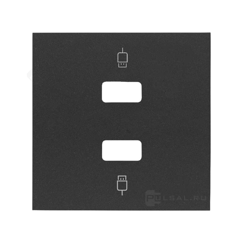 • Кит 2 поста, фронт. Накладка на 2 розетки Schuko с з/у USB SC цвета черный матовый S100