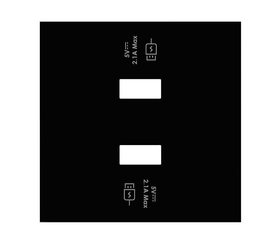 Накладка для механизма розетки USB type-A SmartCharge, 2.1A Simon 100, USB type-A 5V, двойная, цвет - черный матовый