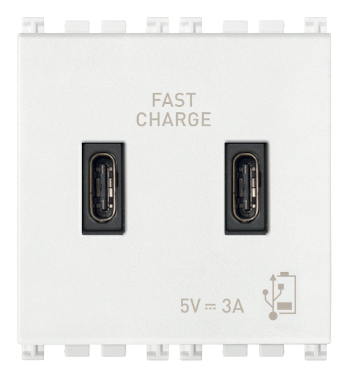 Зарядка USB type-C+C, 3А с быстрой зарядкой Arke, USB type-C 5V, двойная, цвет - белый