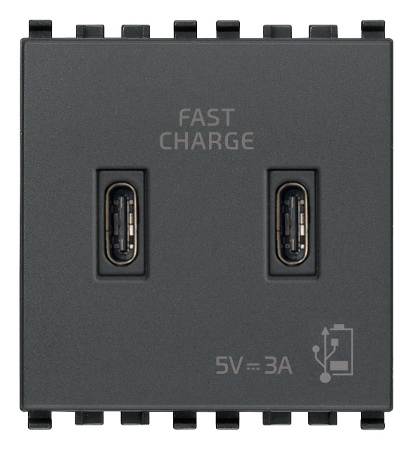Зарядка USB type-C+C, 3А с быстрой зарядкой Eikon EVO, Eikon EXE, USB type-C 5V, двойная, цвет - антрацит серый