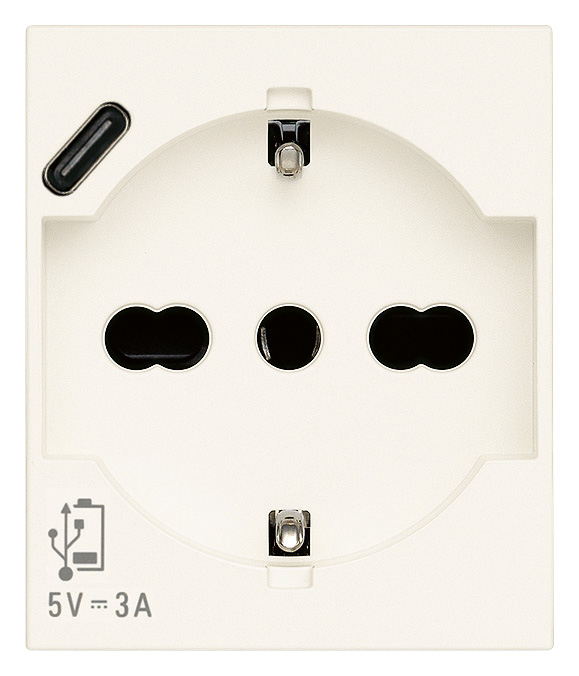 Зарядка USB C 3.0А с электрической розеткой Linea, USB type-C 5V, одинарная, цвет - белый матовый