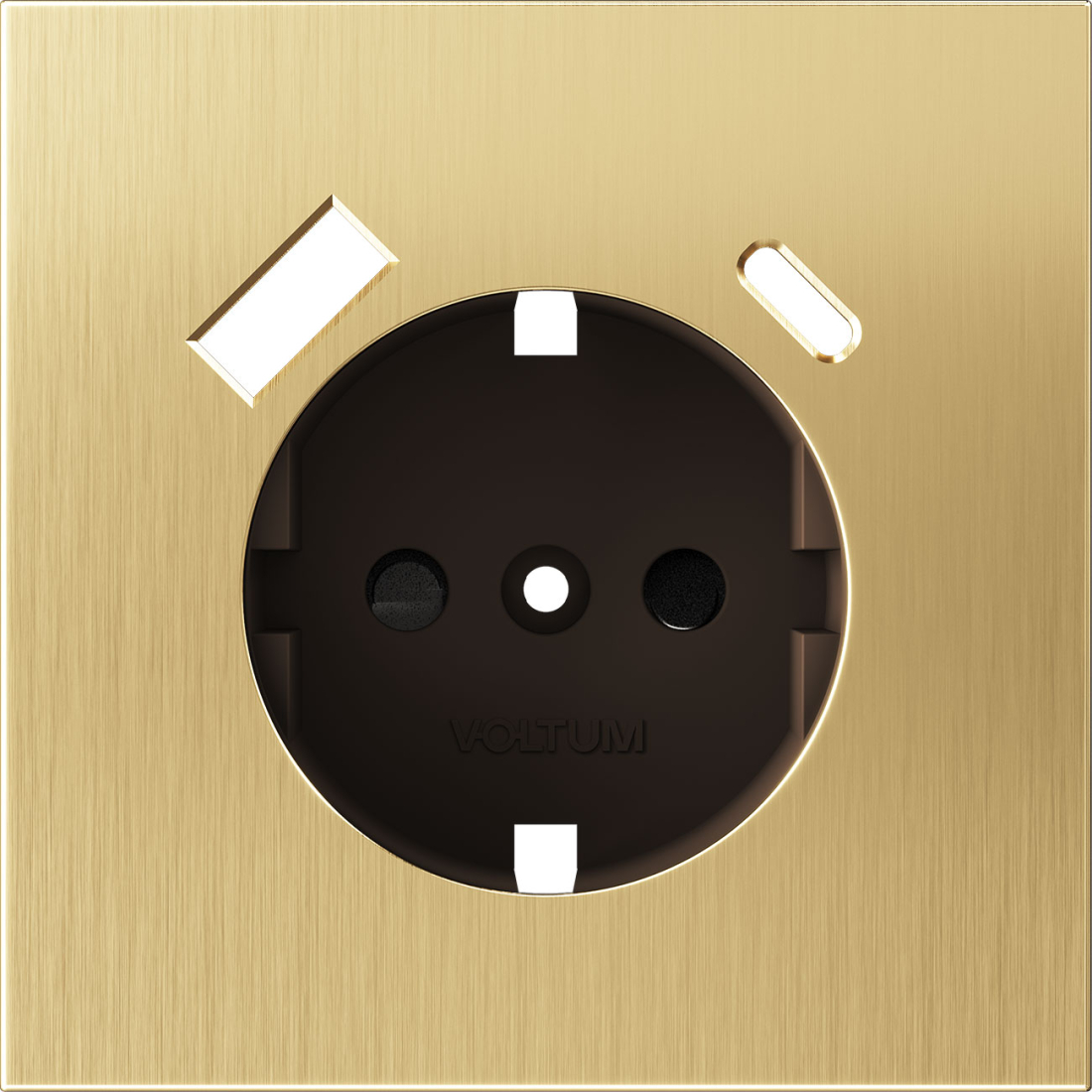 S70 Metal, без шторок, с заземлением, одинарная, безвинтовые клеммы, цвет - латунь металл