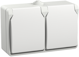Розетка ГЕРМЕС PLUS, со шторками, с крышкой, с заземлением, одинарная, винтовые клеммы, цвет - белый, дымчатый